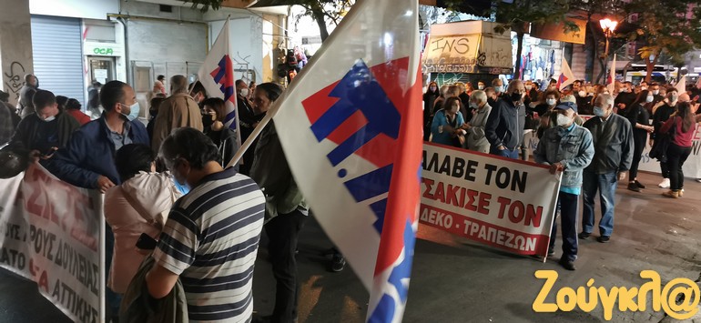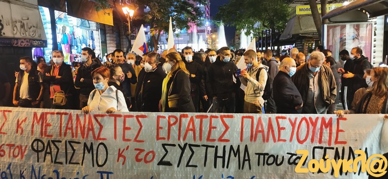 Αντιφασιστική πορεία προς τo Σύνταγμα πραγματοποιεί αυτή την ώρα το ΠΑΜΕ.