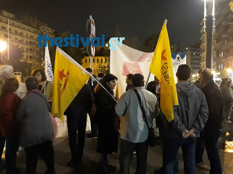 Η σημερινή συγκέντρωση πραγματοποιείται με αφορμή την 74η επέτειο απελευθέρωσης της Θεσσαλονίκης από τα ναζιστικά στρατεύματα κατοχής.