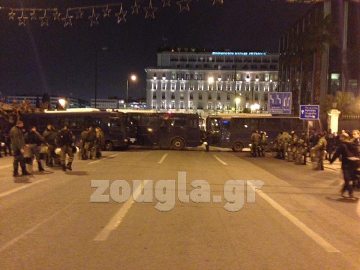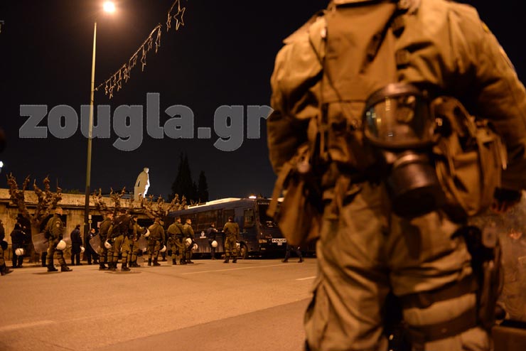 Παράλληλες συγκεντρώσεις πραγματοποιήθηκαν στο κέντρο της Αθήνας, με την αστυνομία να αποκλείει την πρόσβαση στο ύψος της Βουλής, με σκοπό να μην συναντηθούν οι διαδηλωτές. Στις 17:00 ξεκίνησε η συγκέντρωση αντιφασιστικών οργανώσεων στην πλατεία Ομονοίας, σε αντίδραση της ετήσιας εκδήλωσης της Χρυσής Αυγής, στις 19:00, στην πλατεία Ιμίων έξω από τη Λέσχη Αξιωματικών στη Ρηγίλλης.