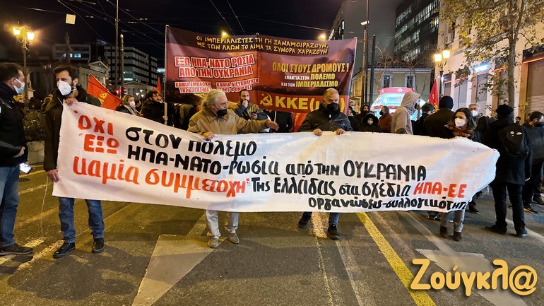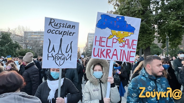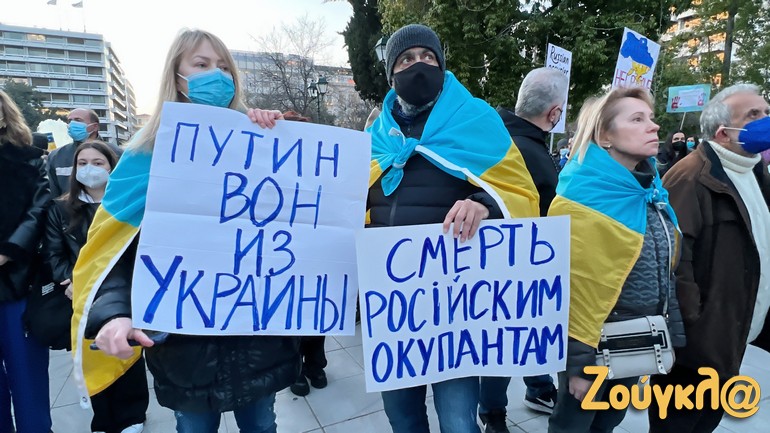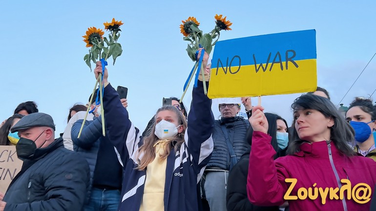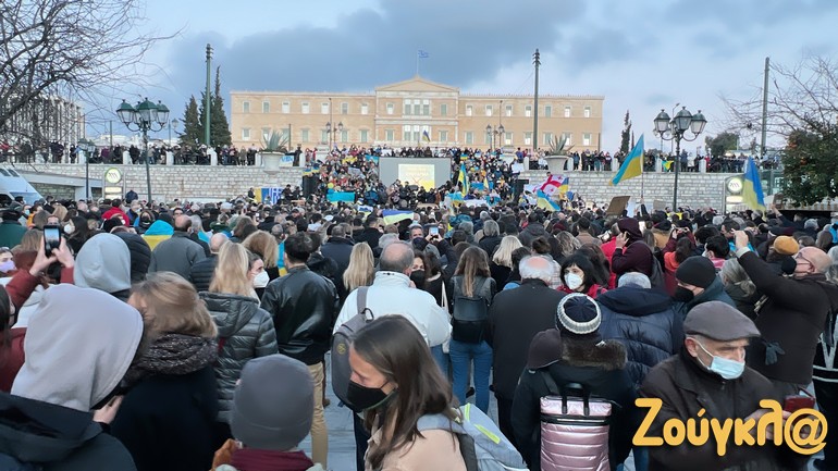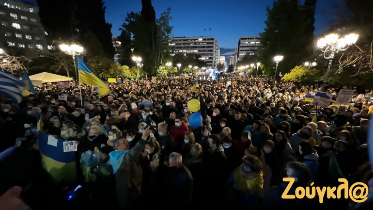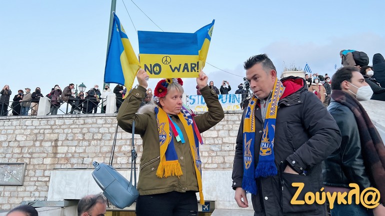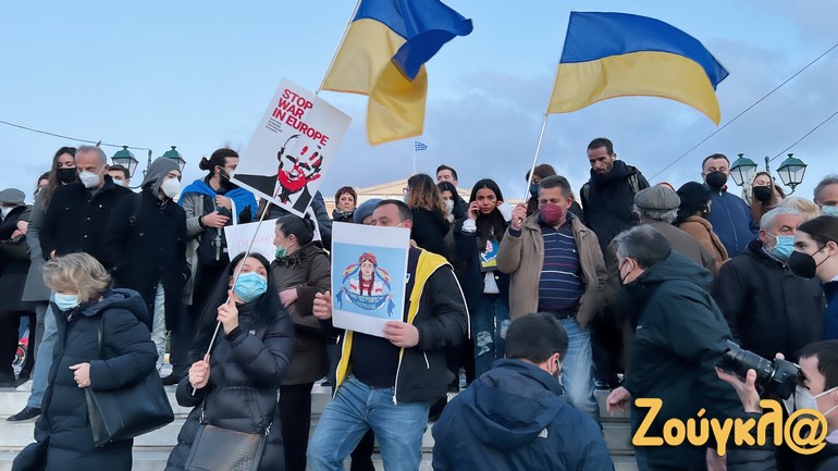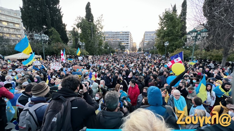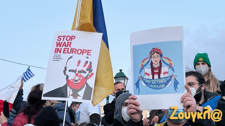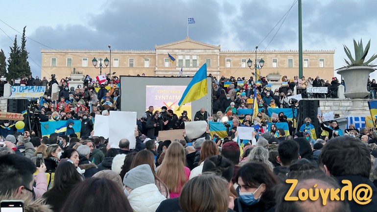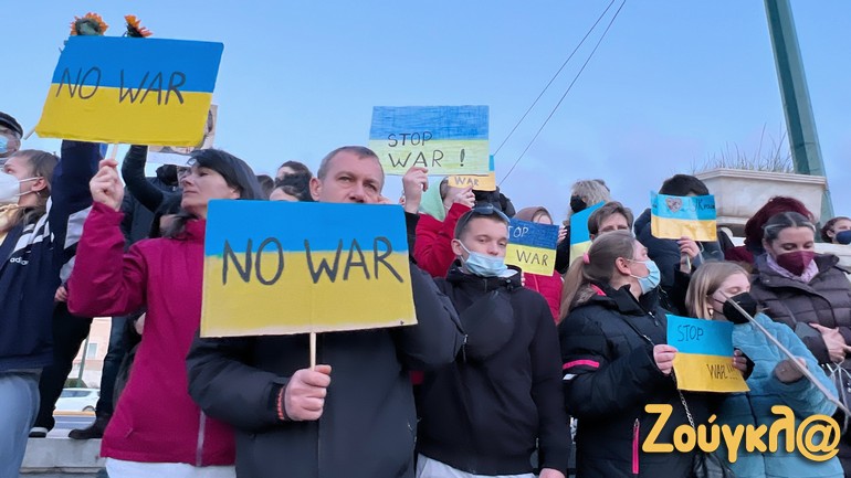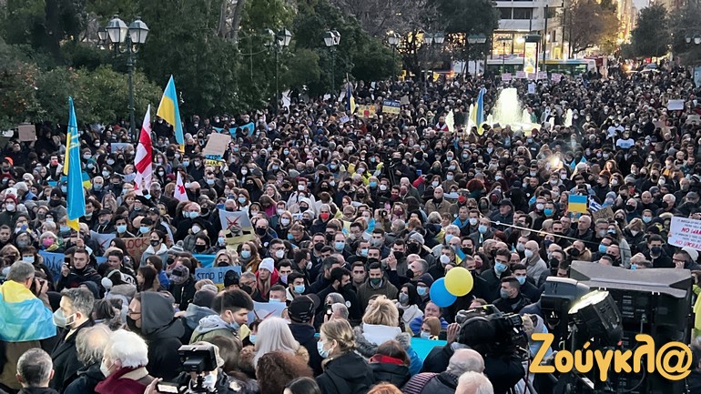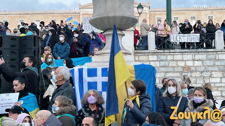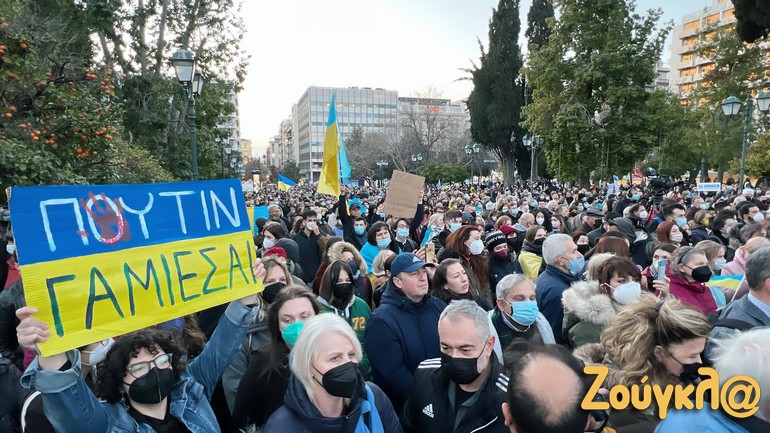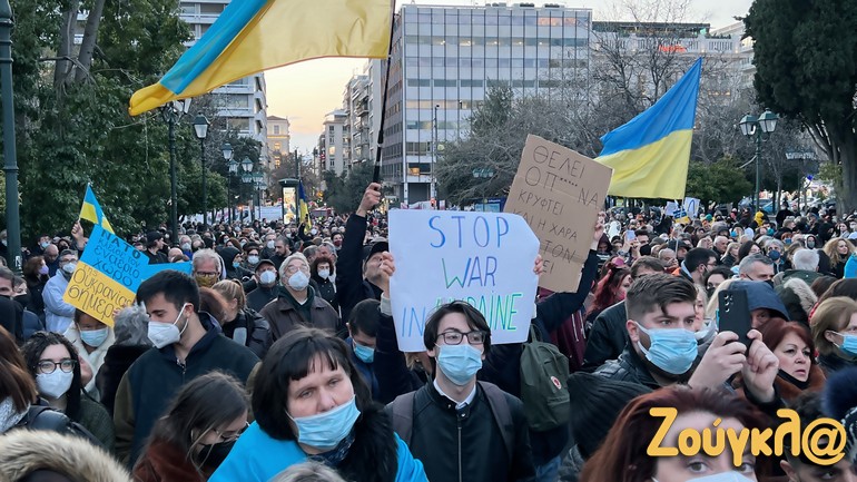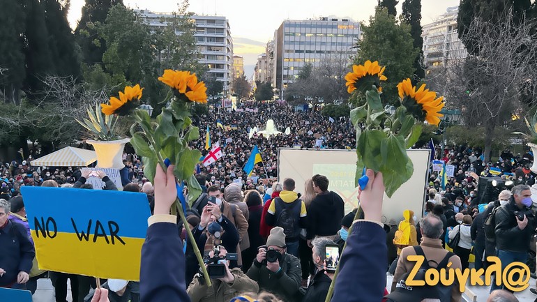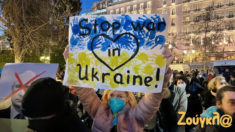 Αντιπολεμικό συλλαλητήριο και συγκέντρωση συμπαράστασης και αλληλεγγύης προς τον ουκρανικό λαό πραγματοποιήθηκε το απόγευμα της Τρίτης, στην πλατεία Συντάγματος. Πλήθος κόσμου είχε συγκεντρωθεί, κρατώντας σημαίες της Ουκρανίας, λουλούδια, καθώς και χαρτόνια με συνθήματα υπέρ της ειρήνης, αλλά και εναντίον του προέδρου της Ρωσίας Βλαντιμίρ Πούτιν και της ρωσικής εισβολής στην Ουκρανία.