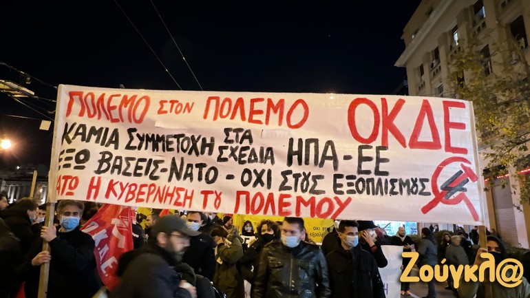 Την ίδια ώρα, δεύτερη ομάδα ατόμων πραγματοποίησε αντιπολεμική συγκέντρωση στα Προπύλαια. Δείτε φωτογραφίες και βίντεο: