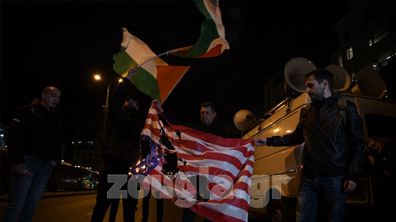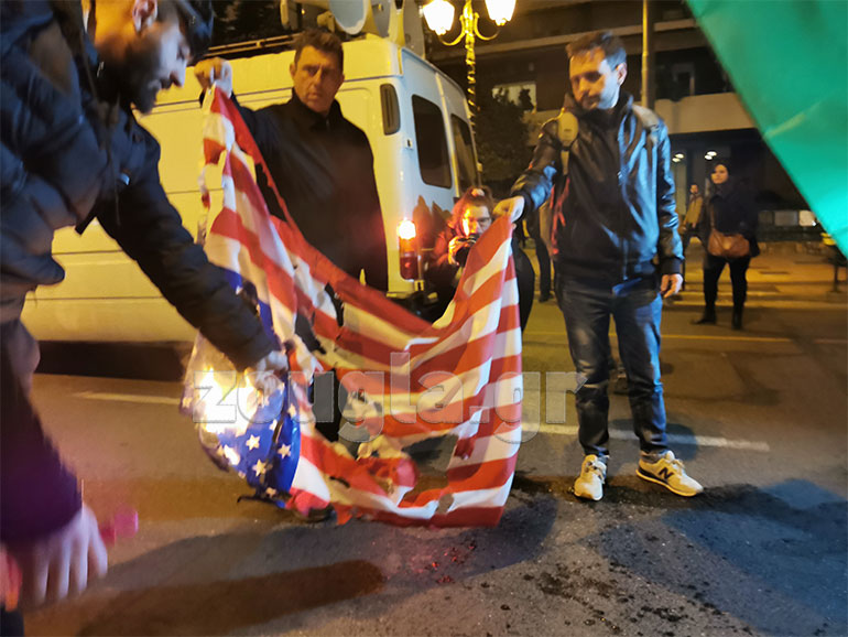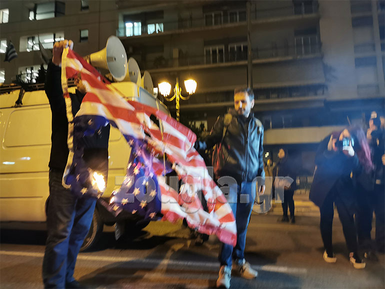 Οι συγκεντρωμένοι σε ένδειξη διαμαρτυρίας έκαψαν την αμερικάνικη σημαία