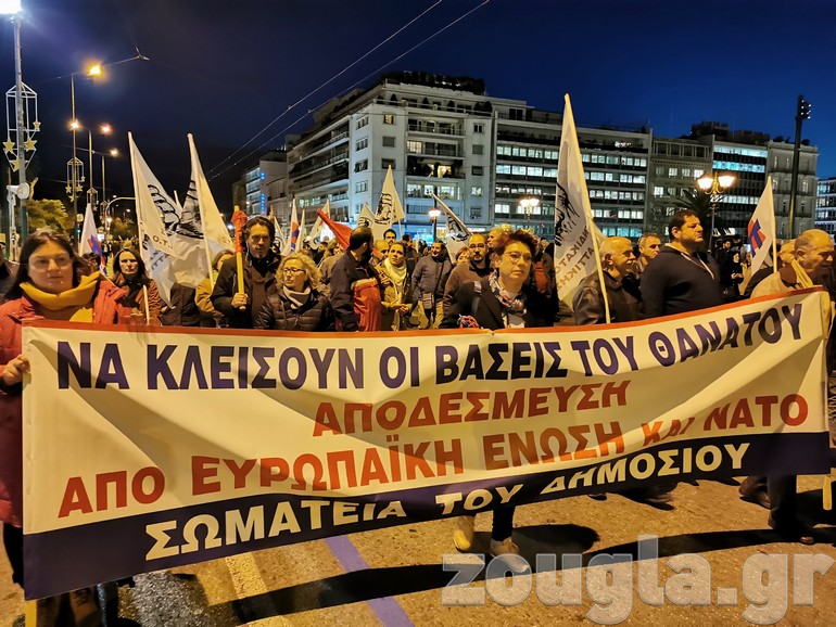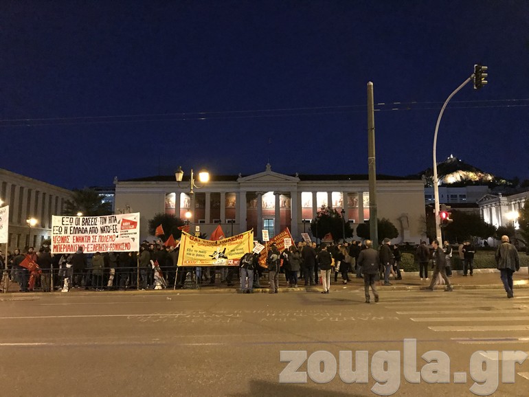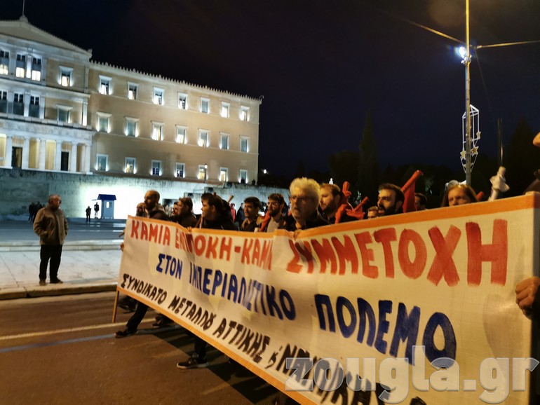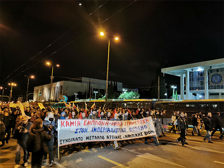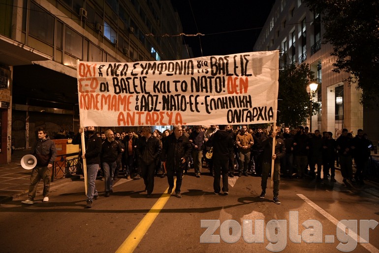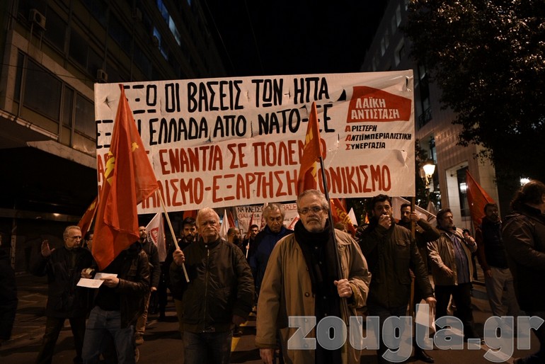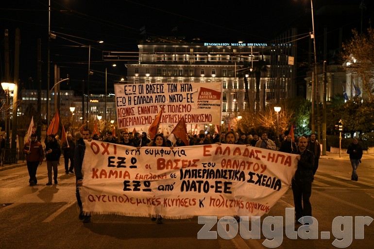 Αντιπολεμικό συλλαλητήριο πραγματοποίησαν μέλη της εξωκοινοβουλευτικής Αριστεράς και άτομα του αντιεξουσιαστικού χώρου ενάντια στη συμφωνία αμοιβαίας αμυντικής συνεργασίας Ελλάδας – ΗΠΑ.