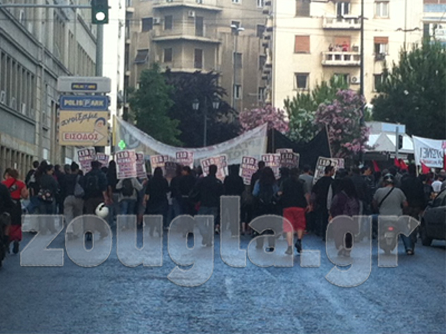 Εξαιτίας της πορείας κλειστή παρέμεινε κλειστή το απόγευμα, η οδός Πατησίων από το ύψος του Μουσείου μέχρι και την Ομόνοια.