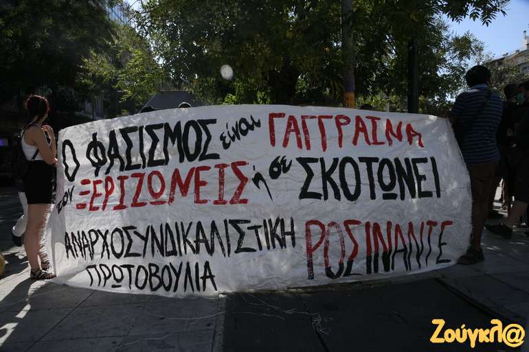 Συγκεντρώθηκαν περίπου 400 άτομα με την πλατεία σε αστυνομικό κλοιό, ενώ μάλιστα εμφανίστηκε και εθνικιστικό πανό στο χώρο από την άλλη πλευρά, η οποία αποτελείτο περίπου από 20 άτομα. Η αντίδραση των αλληλέγγυων ήταν άμεση μέσω αντιρατσιστικών συνθημάτων.