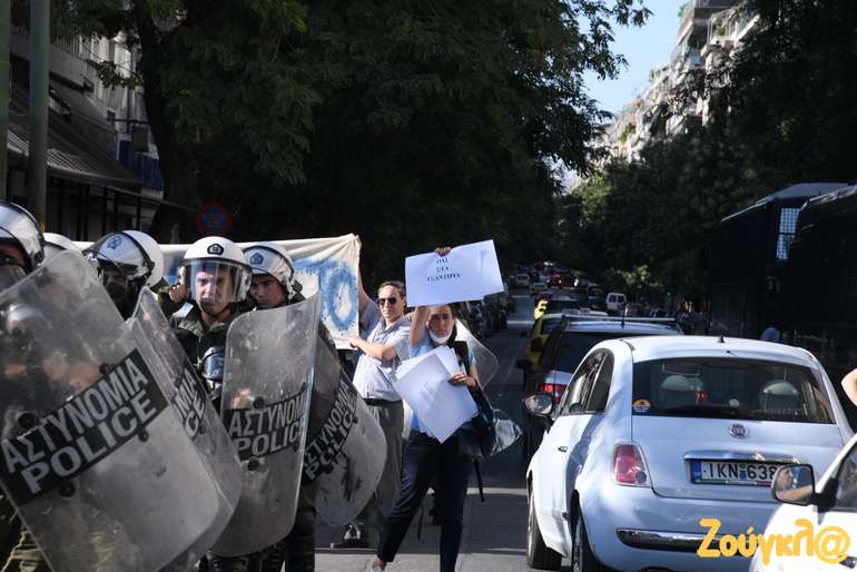 Η αστυνομία διώχνει από την πλατεία πρόσφυγες ώστε να μην έρθουν σε επαφή με τους διαδηλωτές