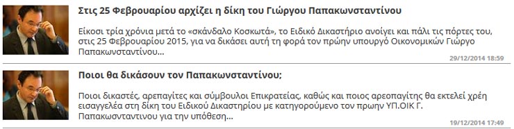 Η δίκη του πρώην υπουργού Οικονομικών Γιώργου Παπακωνσταντίνου, στο Ειδικό Δικαστήριο, για την υπόθεση της λίστας Λαγκάρντ ξεκινάει την ερχόμενη Τετάρτη, 25 Φεβρουαρίου 2015.