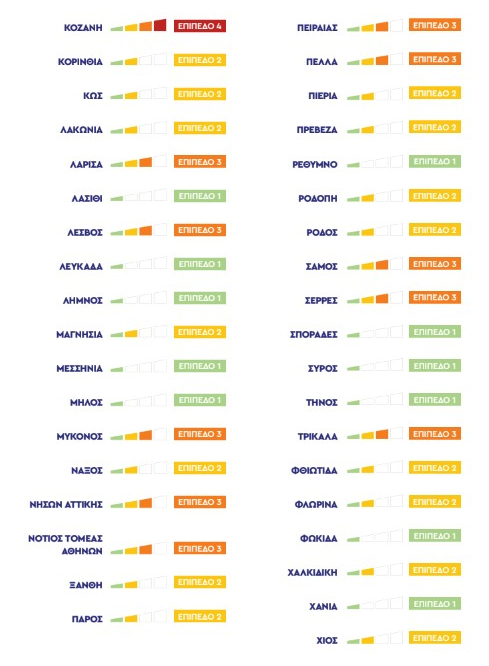 Από το Σάββατο 24 Οκτωβρίου, όπως ανακοίνωσε ο πρωθυπουργός Κυριάκος Μητσοτάκης θα εφαρμοστούν τα νέα μέτρα για τον περιορισμό διάδοσης του κορωνοϊού στις περιοχές που βρίσκονται στα επίπεδα κινδύνου 3 και 4.