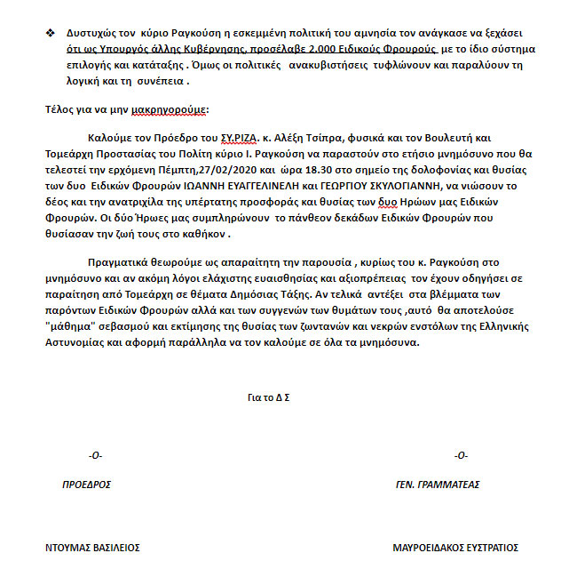 Δείτε την απάντηση των Ειδικών Φρουρών στον κ. Ραγκούση: