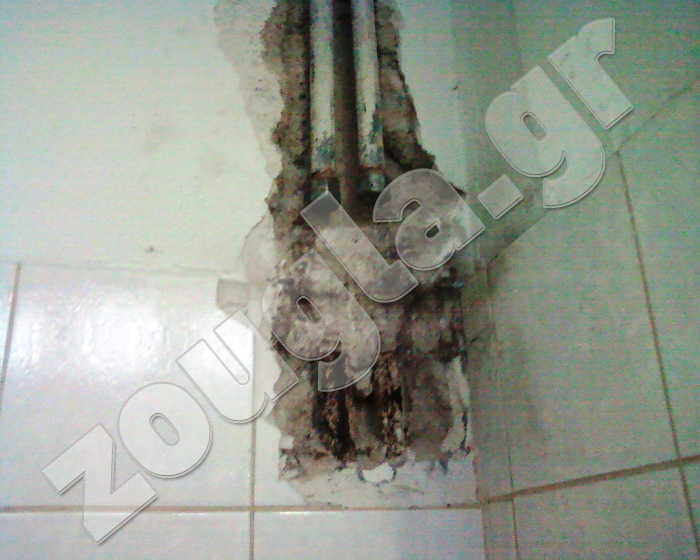 Μουχλιασμένοι τοίχοι, σκουριασμένα μεταλλικά εξαρτήματα, σπασμένες βρύσες και καθρέφτες συνθέτουν ένα ιδιαίτερα επικίνδυνο σκηνικό.