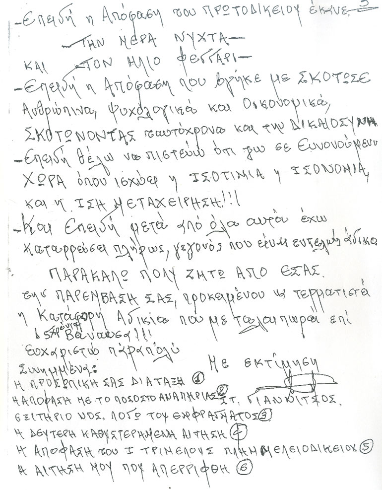 Στα όρια της απόγνωσης, ο 70χρονος Σταύρος Γιαννίτσος που βρισκόταν σε δικαστική διαμάχη με ασφαλιστική εταιρεία, απευθύνει με επιστολή του έκκληση προς τον αρμόδιο εισαγγελέα προκειμένου να επανεξετάσει την υπόθεσή του.