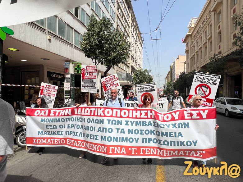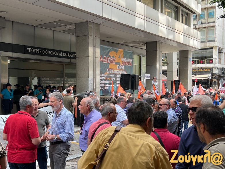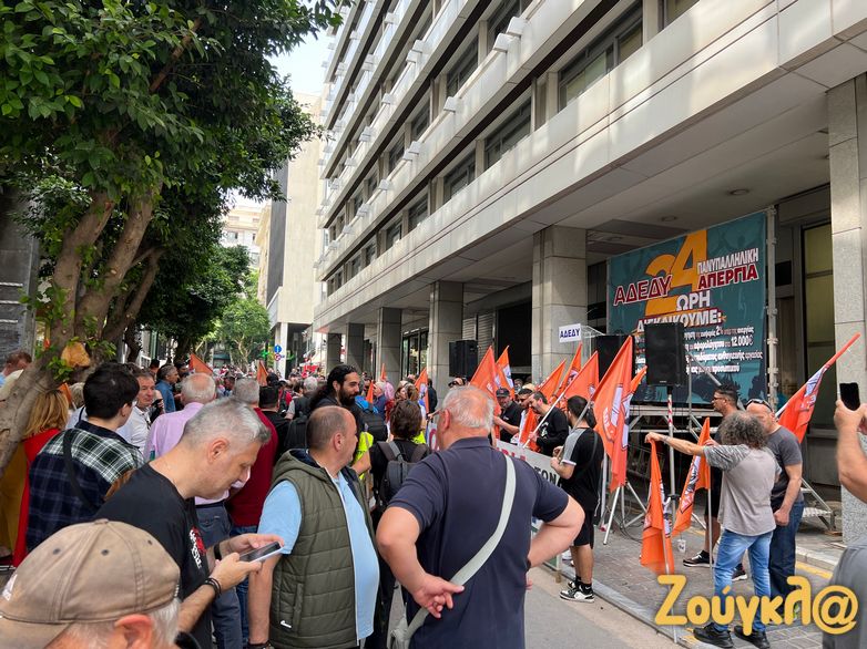 Συγκέντρωση έξω από το υπουργείο Οικονομικών πραγματοποιούν οι εργαζόμενοι στο πλαίσιο της 24ωρης απεργίας που έχει κηρύξει για σήμερα (21/05) η ΑΔΕΔΥ.