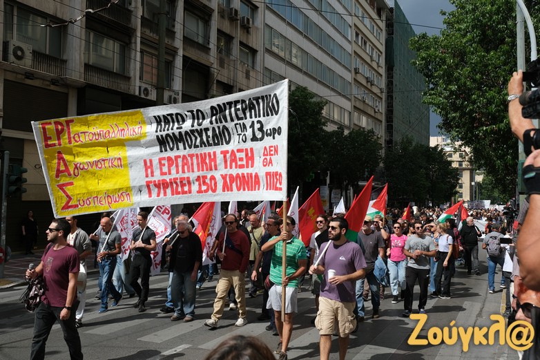 Στην Αθήνα, ο παλμός των κινητοποιήσεων δόθηκε στο κέντρο, όπου έγιναν το μεσημέρι συγκέντρωση του ΠΑΜΕ στα Προπύλαια και κεντρικό συλλαλητήριο της ΓΣΕΕ στην πλατεία Κλαυθμώνος, με χιλιάδες απεργούς να συμμετέχουν.