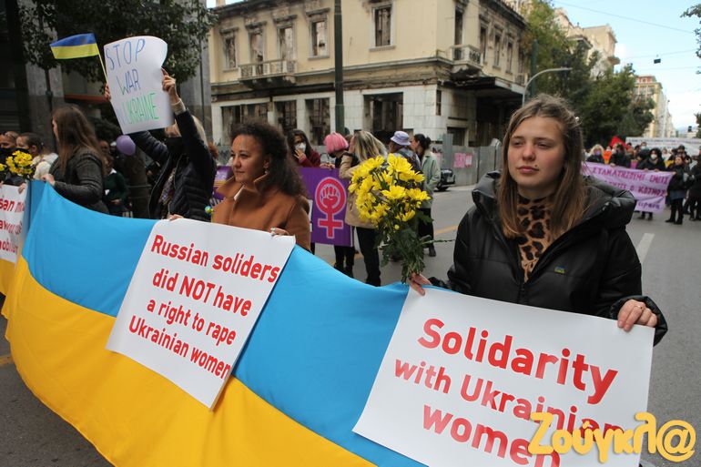 «Ο πόνος μας είναι μεγάλος» είπε σε κλίμα συγκίνησης η Χάνα Ολάνιτς, εκπροσωπώντας την οργάνωση «Ukrainian Women in Greece» (Ουκρανές Γυναίκες στην Ελλάδα), η οποία συμμετείχε στην πορεία κρατώντας κίτρινα γαρύφαλλα και καταχειροκροτήθηκε από το συγκεντρωμένο πλήθος.