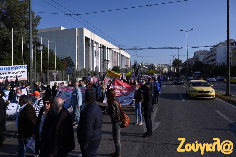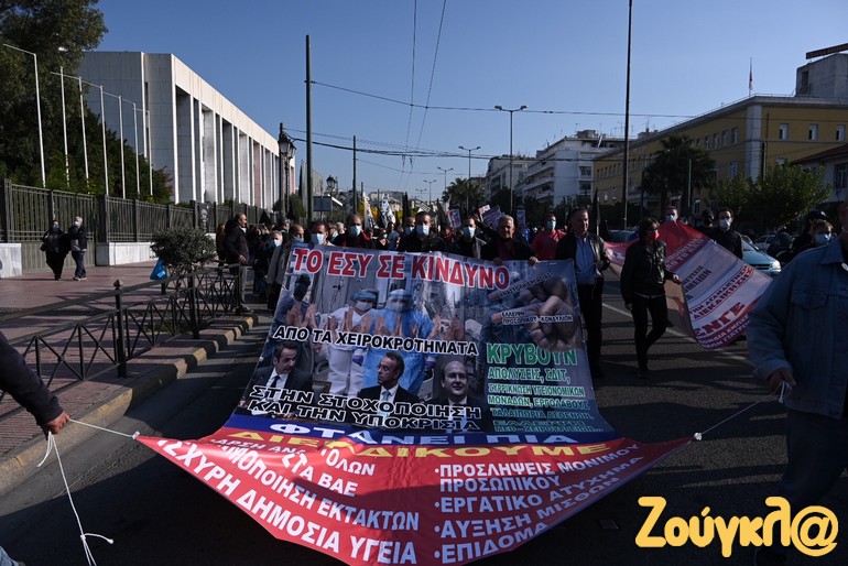 Από τις 8:30πμ η ΠΟΕΔΗΝ πραγματοποίησε συγκέντρωση στην πλατεία “ΜΑΒΙΛΗ” και στην συνέχεια ακολούθησε πορεία προς το Μαξίμου, τη Βουλή, και το Υπουργείο Υγείας.