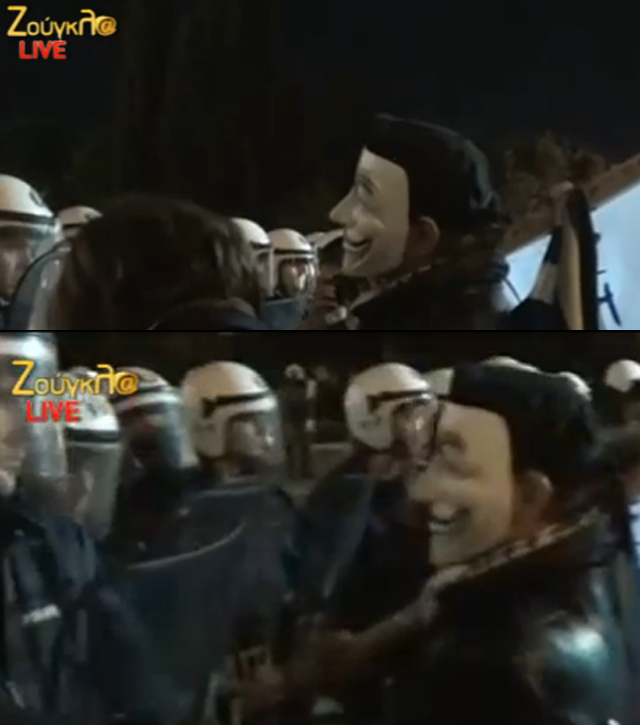 (Η αστυνομία απέναντι από τους διαδηλωτές)