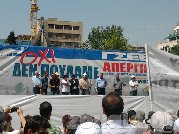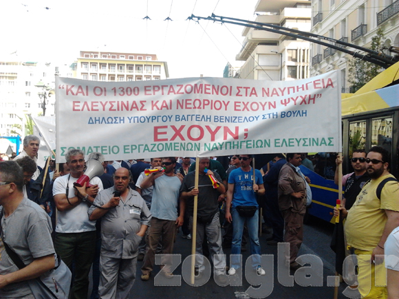 Λίγο μετά τις 10:00 το σωματείο των ναυτεργατών βρέθηκε στην πλατεία Κλαυθμώνος και στη συνέχεια ακολούθησε πορεία και συγκέντρωση προς το υπουργείο Οικονομικών.
