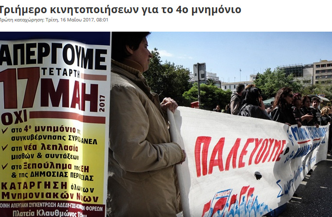 Το Γενικό Συμβούλιο της ΟΕΝΓΕ έχει προκηρύξει 48ωρη απεργία (17-18 Μαΐου), τονίζοντας ότι «κλιμακώνεται η επίθεση σε βάρος της Υγείας, του λαού και των δικαιωμάτων των υγειονομικών». Προσθέτει ότι «την ώρα που η κυβέρνηση μιλάει ανερυθρίαστα για ενίσχυση του δημόσιου συστήματος Υγείας, επιβάλλει νέες περικοπές στην ιατροφαρμακευτική περίθαλψη στο όνομα του εξορθολογισμού των δαπανών. Με τα νέα μέτρα μειώνεται κατά 30% το ποσό που θα αποζημιώνεται για φάρμακα, εξετάσεις και άλλα».