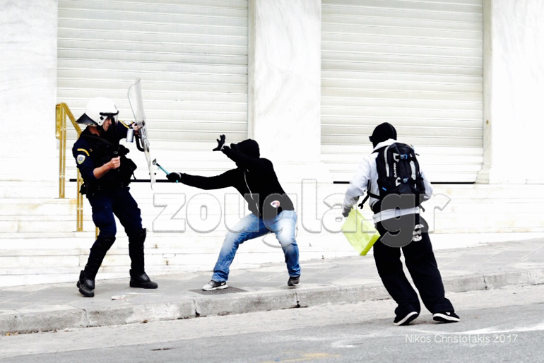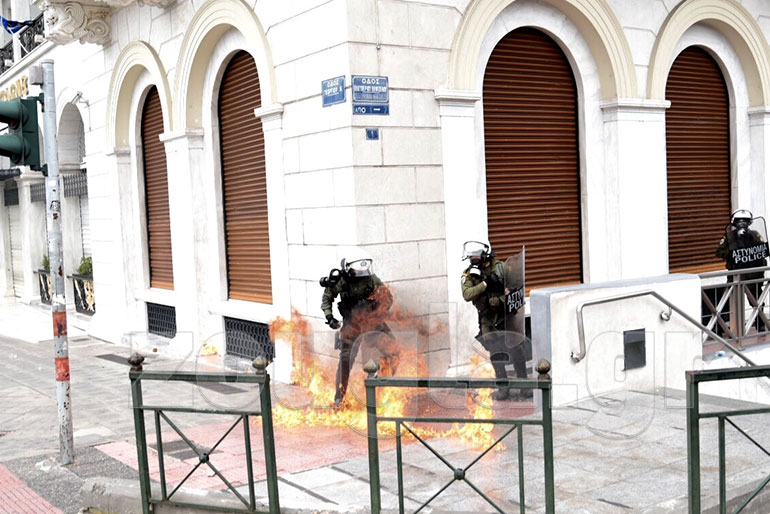Ομάδα διαδηλωτών πέταξε αντικείμενα προς τους αστυνομικούς, οι οποίοι απάντησαν με περιορισμένη ρίψη χημικών.