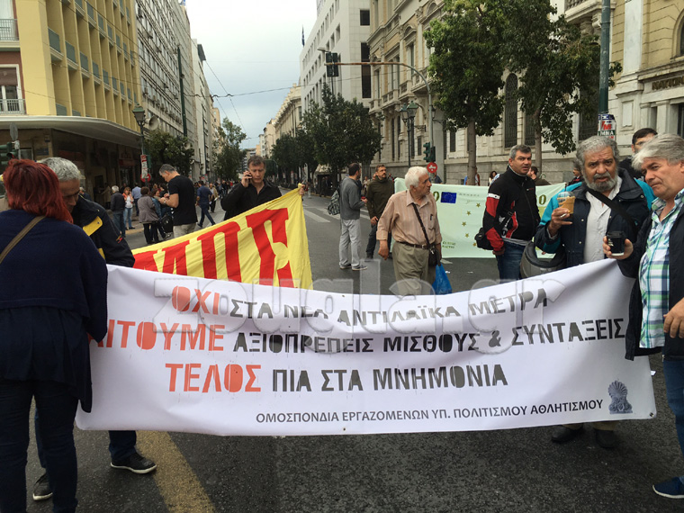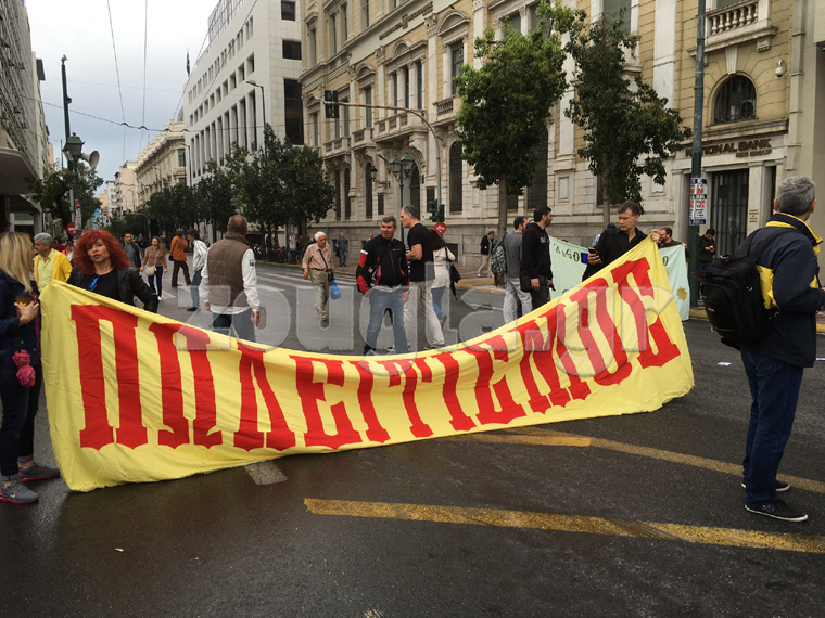 Στην απεργία συμμετέχουν και οι ιδιωτικοί υπάλληλοι που διαμαρτύρονται κατά του «συμπληρωματικού μνημονίου που συνεχίζει την κατεδάφιση της οικονομίας, της κοινωνίας, των εργαζομένων και όσων δικαιωμάτων έχουν μείνει όρθια».