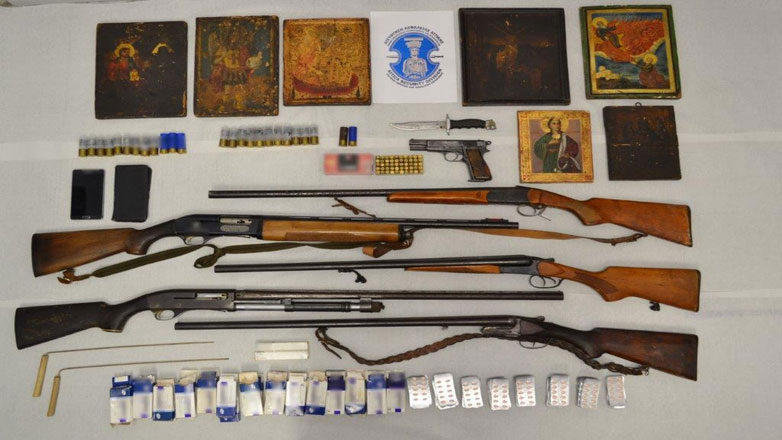 Σε βάρος τριών ημεδαπών ηλικίας 53, 54 και 52 ετών που συνελήφθησαν στο πλαίσιο της επιχείρησης, σχηματίστηκε δικογραφία -κατά περίπτωση- για σύσταση εγκληματικής οργάνωσης, παράβαση της νομοθεσίας περί αρχαιοτήτων, περί όπλων και περί εξαρτησιογόνων ουσιών.