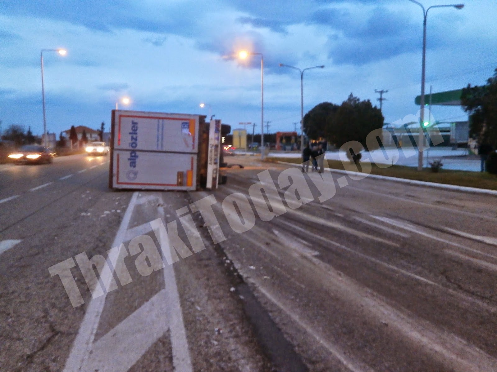 Ένα φορτηγό όχημα από την Τουρκία ανετράπη το απόγευμα της Μεγάλης Τετάρτης στην Εθνική Οδό Ξάνθης – Κομοτηνής, στην ανατολική έξοδο της πόλης.