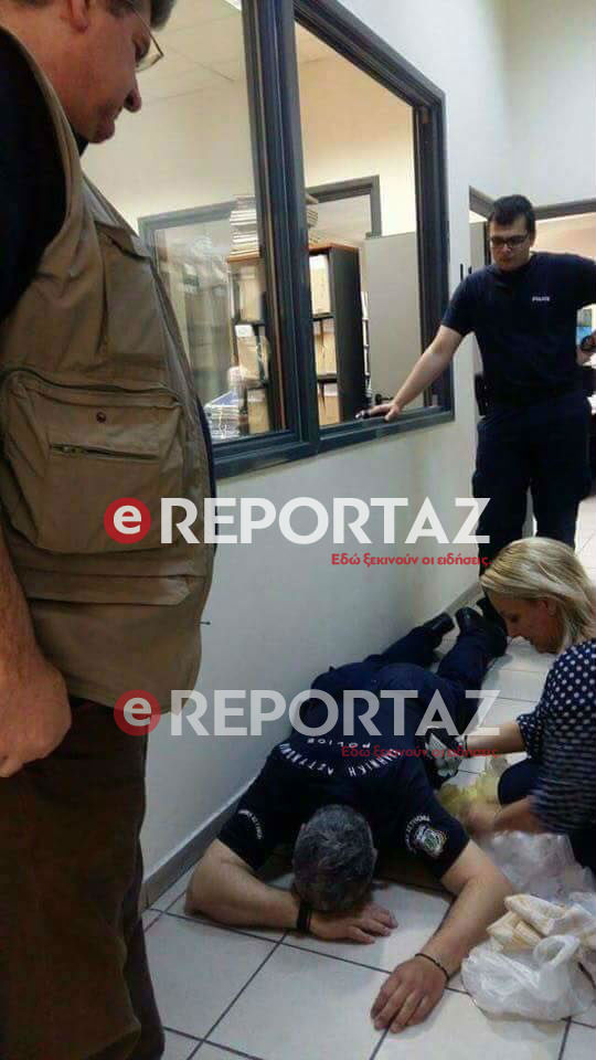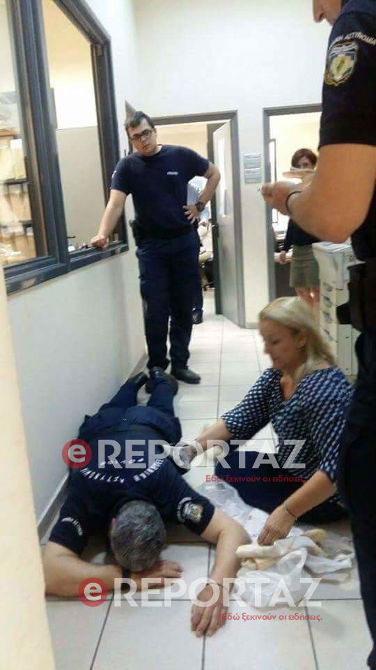 Οι φωτογραφίες που δημοσιεύει το ereportaz εμφανίζουν τον αστυνομικό να κείτεται λιπόθυμος ύστερα από τον ξυλοδαρμό.