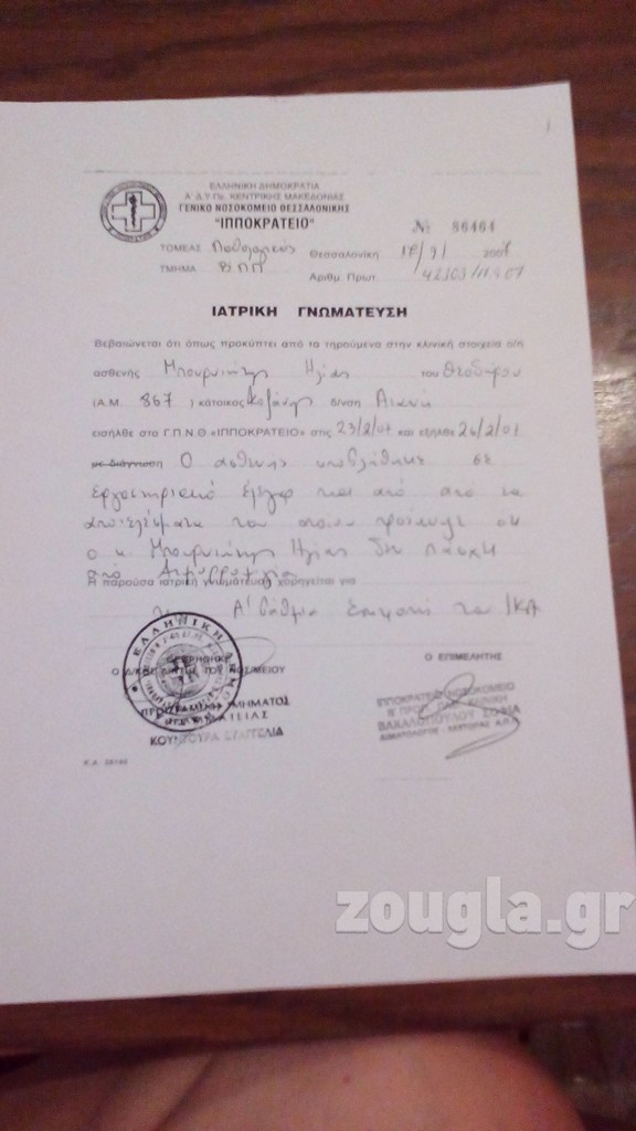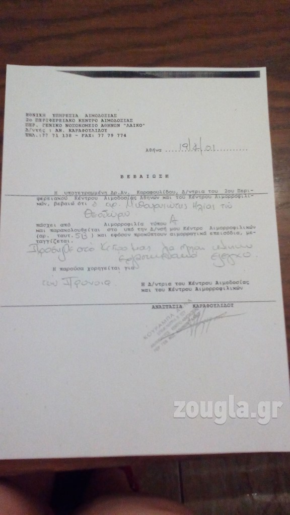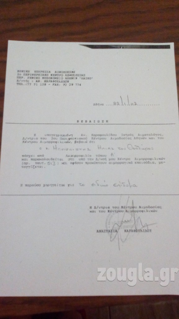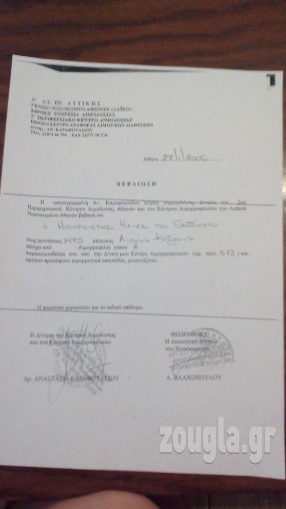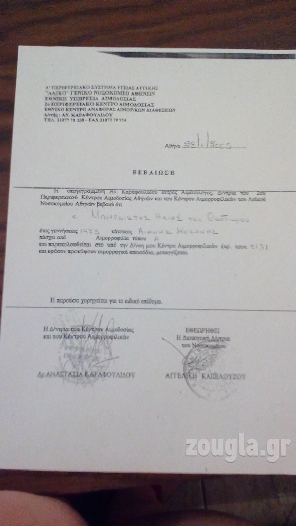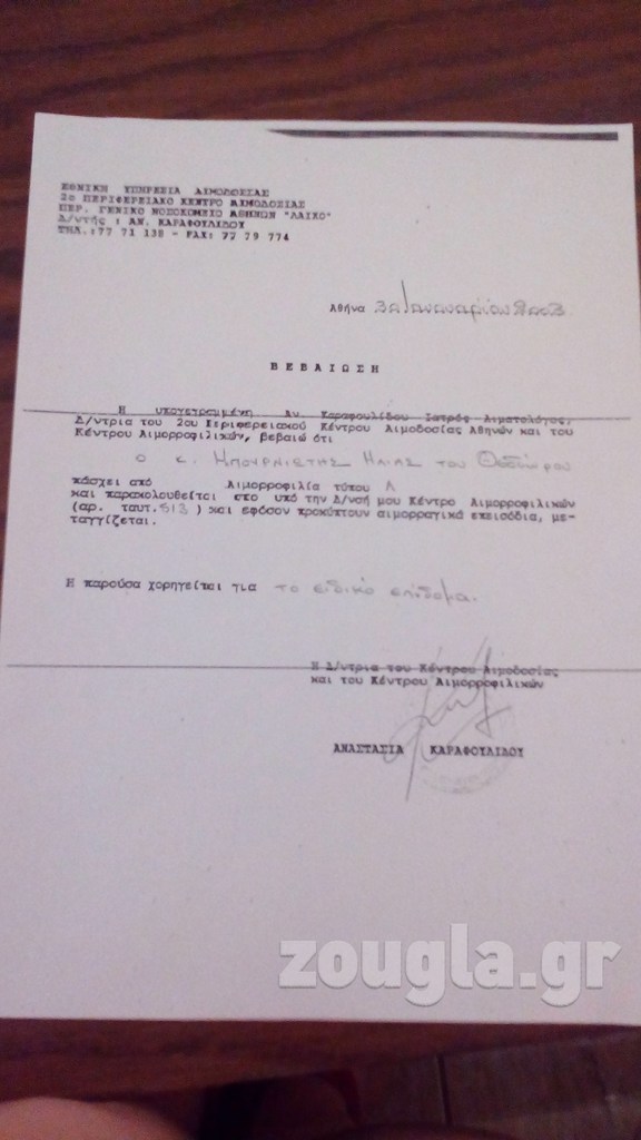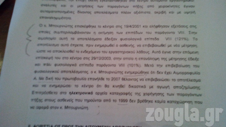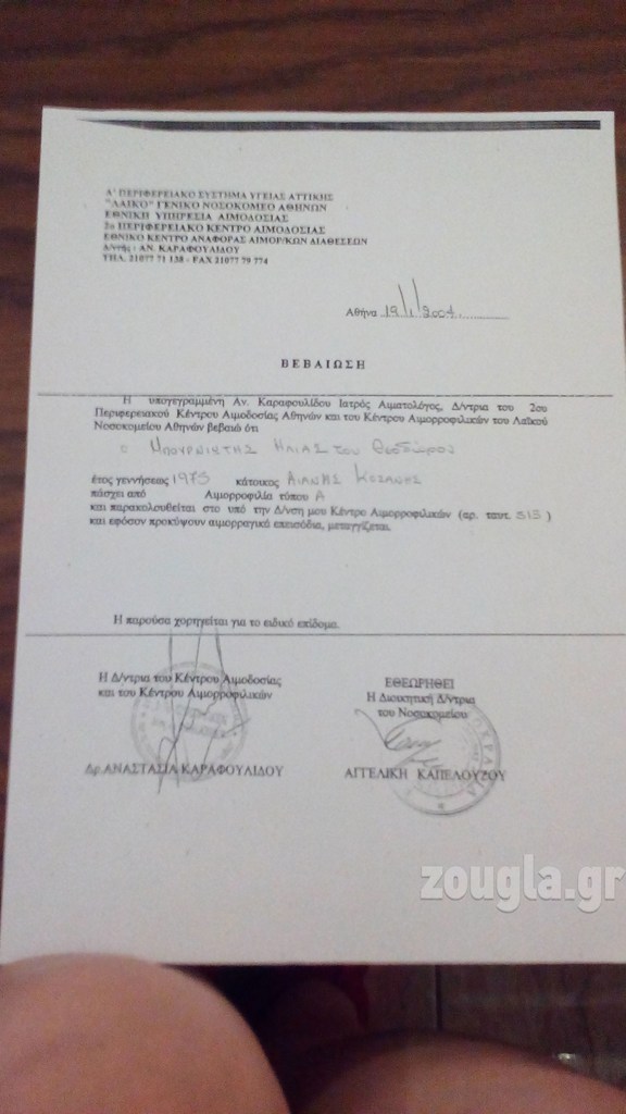 Η ιατρική γνωμάτευση από το Ιπποκράτειο που αποδεικνύει πως ο καταγγέλλων δεν ήταν ποτέ αιμοφιλικός: