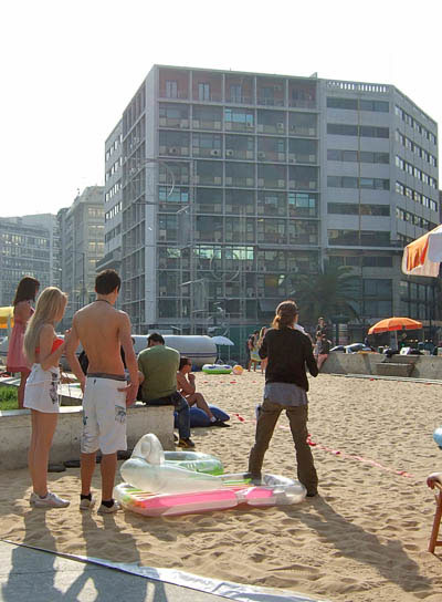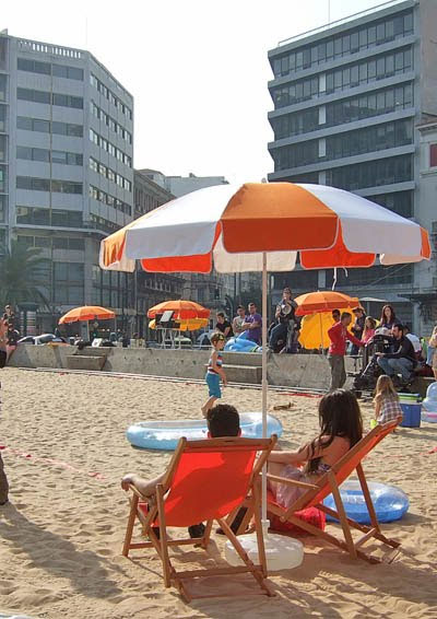 Μία έκπληξη περίμενε σήμερα το πρωί όσους βρέθηκαν στην πλατεία της Ομόνοιας, καθώς μπροστά στα μάτια τους εμφανίστηκε μία… παραλία γεμάτη κόσμο που έκανε ηλιοθεραπεία και έπαιζε μέχρι και ρακέτες.