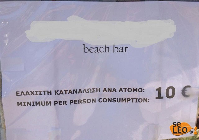 Την Κυριακή στις 10 το πρωί σε beach bar μετά τον όρμο Παναγιάς, σεκιούριτι δεν επέτρεπε στον κόσμο να πλησιάσει την παραλία εάν δεν δεχόταν να πληρώσει 10 ευρώ το άτομο σαν ελάχιστη κατανάλωση!