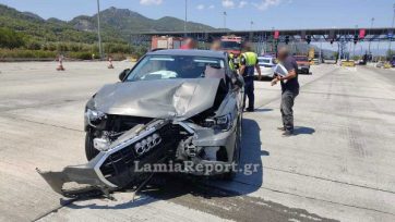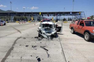 ΙΧΕ μάρκας AUDI με επιβάτες ένα ζευγάρι έπεσε με ταχύτητα πίσω από άλλο ΙΧΕ μάρκας FIAT με οδηγό έναν άνδρα, που ήταν σταματημένο στο σημείο προκειμένου να πληρώσει το αντίτιμο για να περάσει!