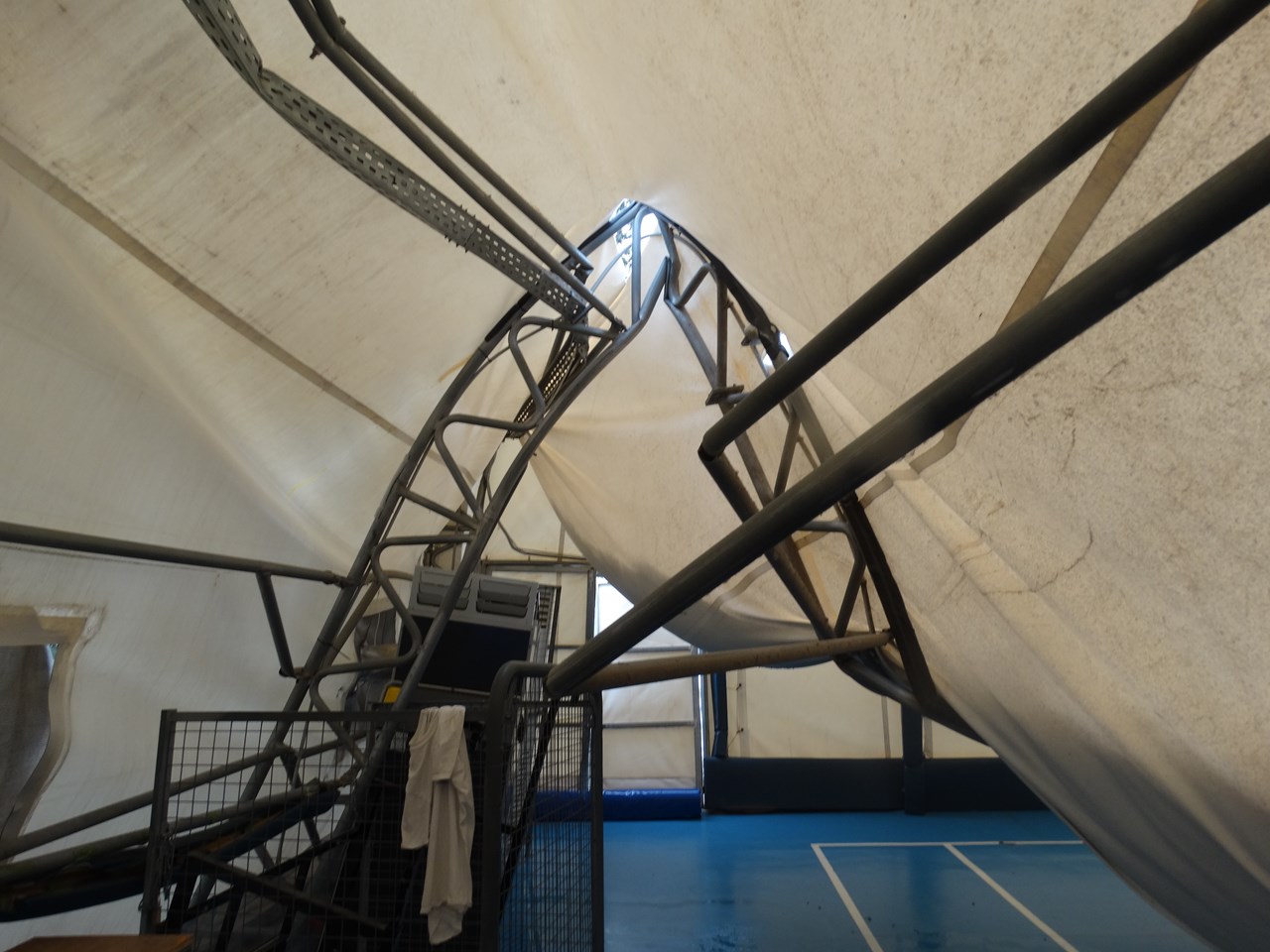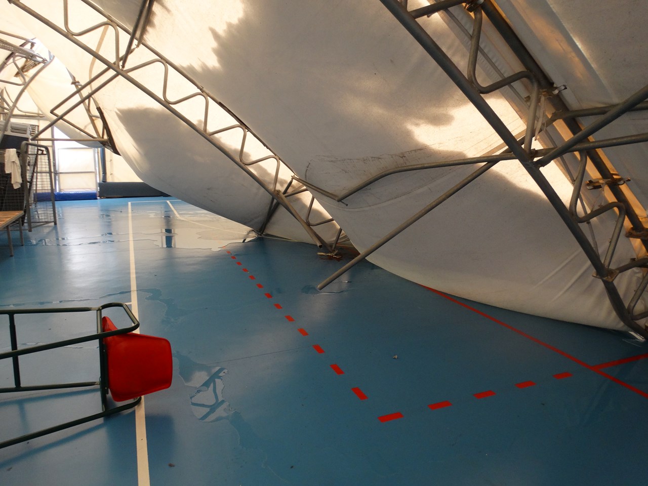 Όπως φαίνεται στην επιφάνεια του μπαλονιού συσσωρεύτηκε πολύ μεγάλη ποσότητα χιονιού, την οποία δεν έγινε δυνατό να απομακρυνθεί. Αυτό είχε ως αποτέλεσμα να λυγίσει ο εσωτερικός σκελετός του μπαλονιού και να καταρρεύσει ολόκληρη η κατασκευή. Το ευτύχημα ήταν ότι λόγω της κακοκαιρίας όλες οι προπονήσεις είχαν αναβληθεί και δεν υπήρχαν αθλητές στο εσωτερικό του χώρου. Ωστόσο, αν το μπαλόνι είχε αντέξει άλλη μια ή δύο ημέρες με έναν τεράστιο όγκο χιονιού να το πιέζει και οι προπονήσεις είχαν αρχίσει ξανά μετά το τέλος της κακοκαιρίας, ίσως να γινόμασταν μάρτυρες πολύ δυσάρεστων καταστάσεων.