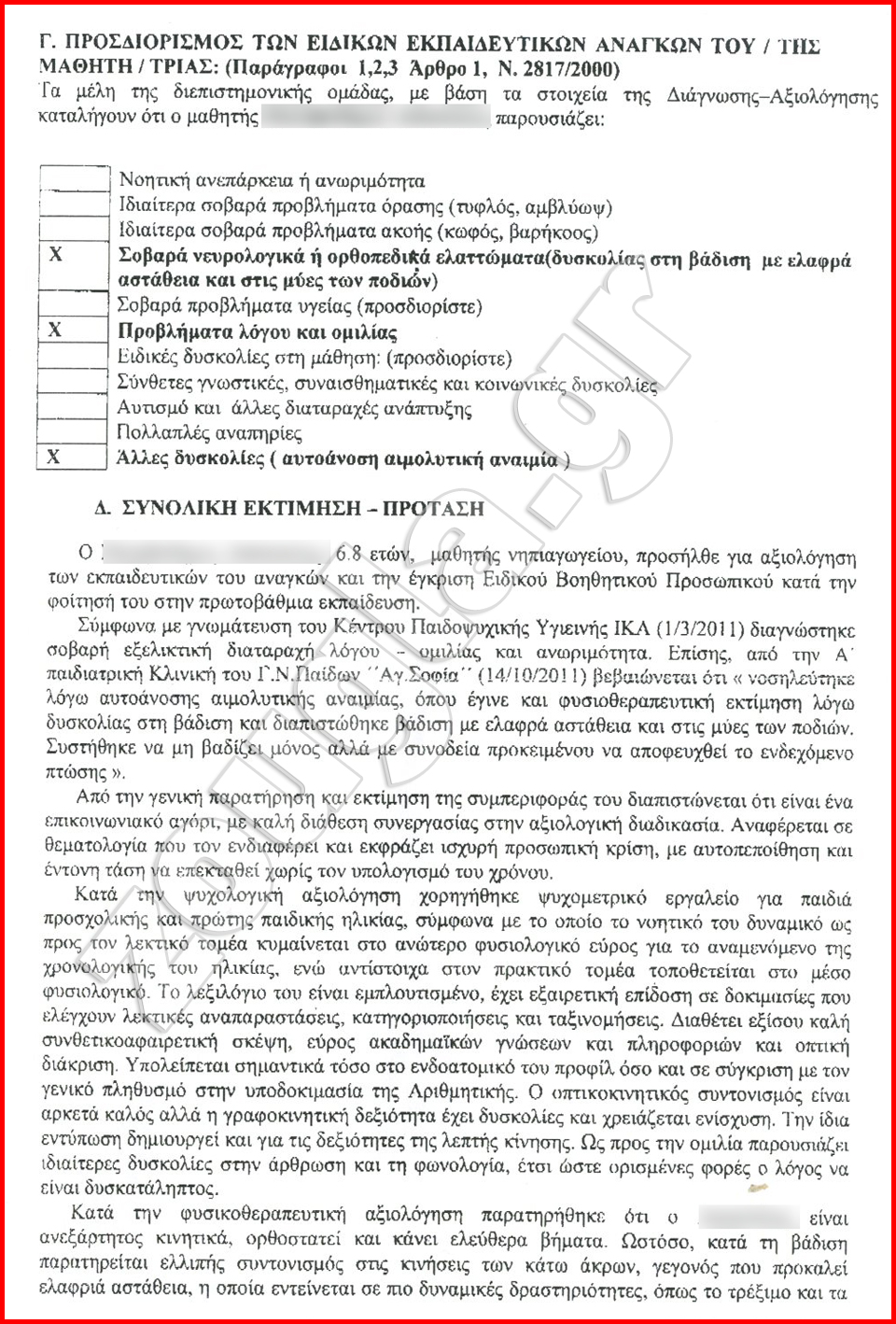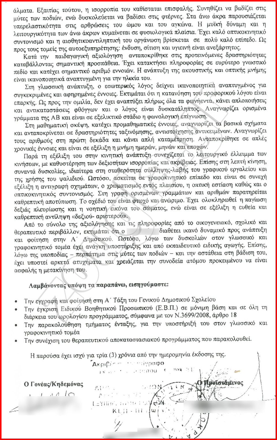 Παρ’ όλο που το σχολείο του, κατέθεσε (σύμφωνα με τον νόμο 3699/2008), από τον Ιούνιο αίτηση για έγκριση ειδικού προσωπικού σε μόνιμη βάση και σε όλη τη διάρκεια του ωρολογίου προγράμματος, οι εκκλήσεις του «έπεσαν στο κενό».