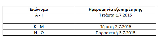 Για τα ΑμεΑ έχει ληφθεί ειδική μέριμνα και θα εξυπηρετούνται κατά προτεραιότητα όλες τις παραπάνω ημέρες, ανεξαρτήτως επωνύμου.