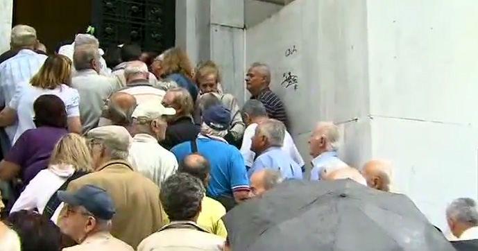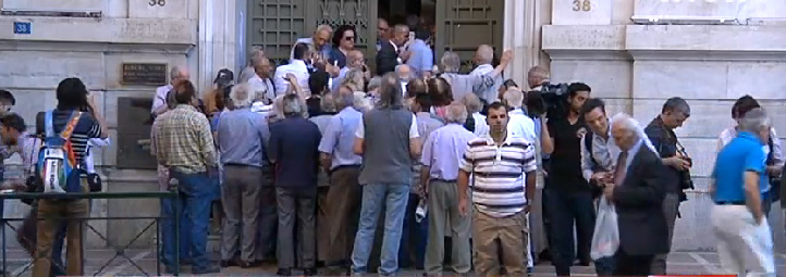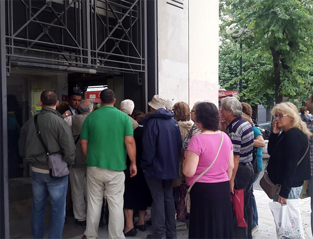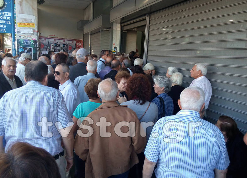 Παρόμοιες εικόνες και σε άλλες μεγάλες πόλεις της Ελλάδας. Πλήθος συνταξιούχων περίμενε για αρκετή ώρα έξω από υποκαταστήματα τραπεζών.