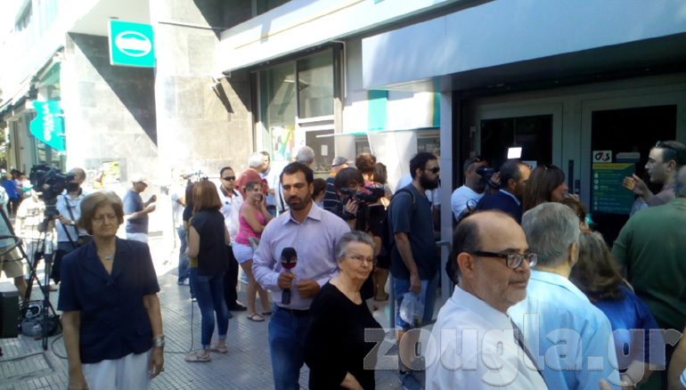 Οι δικαιούχοι σχημάτισαν ουρές πολλών μέτρων προκειμένου να πάρουν τα 120 ευρώ από τα γκισέ και ήδη οι πρώτοι συνταξιούχοι έλαβαν το συγκεκριμένο ποσό.