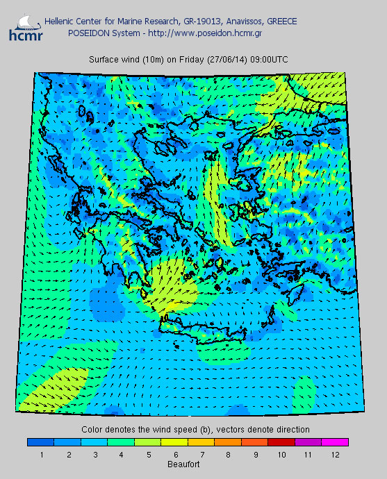 Οι άνεμοι στο Αιγαίο θα πνέουν από νότιες διευθύνσεις ασθενείς έως μέτριοι και τοπικά στο Νοτιοδυτικό Αιγαίο ισχυροί αλλά από το βράδυ στο Βόρειο Αιγαίο θα στραφούν σε βορειοανατολικούς και θα ενισχυθούν σε σχεδόν θυελλώδεις. Στο Ιόνιο οι άνεμοι θα πνέουν ασθενείς και από το μεσημέρι βορειοδυτικοί μέτριοι.