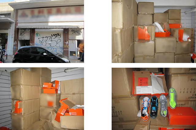 Ειδικότερα, πρόκειται για υπόγεια αποθήκη εμβαδού 150 τ.μ. περίπου, στους χώρους της οποίας βρέθηκαν πάνω από 30.000 ζεύγη υποδημάτων, τα οποία αποτελούν προϊόντα παραποίησης αυθεντικών ειδών.