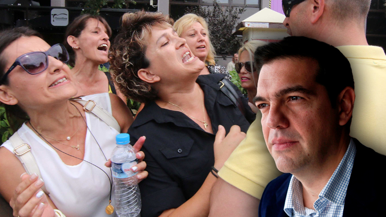 Αμέσως παρενέβη η φρουρά του Αλέξη Τσίπρα και απομάκρυνε τις γυναίκες χωρίς να συνεχιστεί το επεισόδιο.