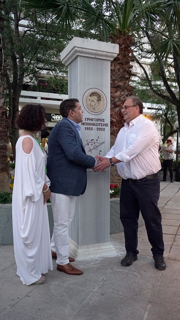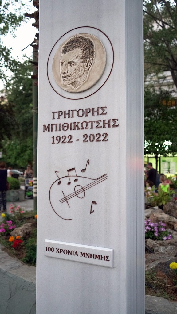 Σε μια σεμνή τελετή, απολύτως ταιριαστή με τη δωρικότητα της προσωπικότητας και της φωνής του, έγιναν, τη Δευτέρα 27 Ιουνίου, τα αποκαλυπτήρια της τιμητικής στήλης για τον μεγάλο ερμηνευτή μας Γρηγόρη Μπιθικώτση, στην πλατεία Αρκαδίας και Ολύμπου, η οποία φέρει πλέον το όνομά του.