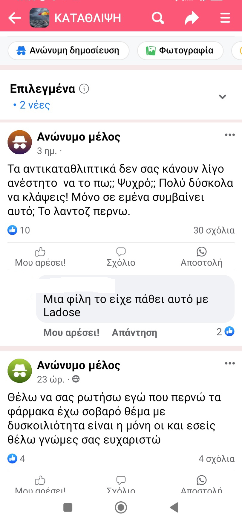 Μια απλή περιήγηση στο πιο διαδεδομένο μέσο κοινωνικής δικτύωσης, το Facebook μας οδήγησε σε μια ομάδα με το όνομα «ΚΑΤΑΘΛΙΨΗ» στην οποία έχουν συνδεθεί και συμμετέχουν παραπάνω από 36.000 χρήστες. Και μέχρι εδώ, δεν υπάρχει κάποιο πρόβλημα. Όμως ψάχνοντας καλύτερα στις συνομιλίες των χρηστών διαπιστώνει πάρα πολύ εύκολα κάποιος ότι διάφοροι υποτιθέμενοι χρήστες του διαδικτύου διαφημίζουν διάφορα χάπια που ταιριάζουν καλύτερα στα προφίλ των ανθρώπων που προσπαθούν να βρουν διέξοδο στο πρόβλημά τους μέσα από το Facebook.