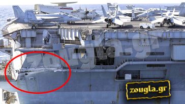 Δείτε τις ζημιές που υπέστη το αμερικανικό αεροπλανοφόρο (μέσα στον κόκκινο κύκλο)