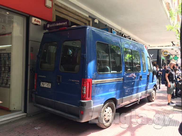 Την είσοδο του συμβολαιογραφείου που βρίσκεται στην οδό Ακαδημίας στο νούμερο 62 είχε αποκλείσει ένα βαν της ΕΛ.ΑΣ.