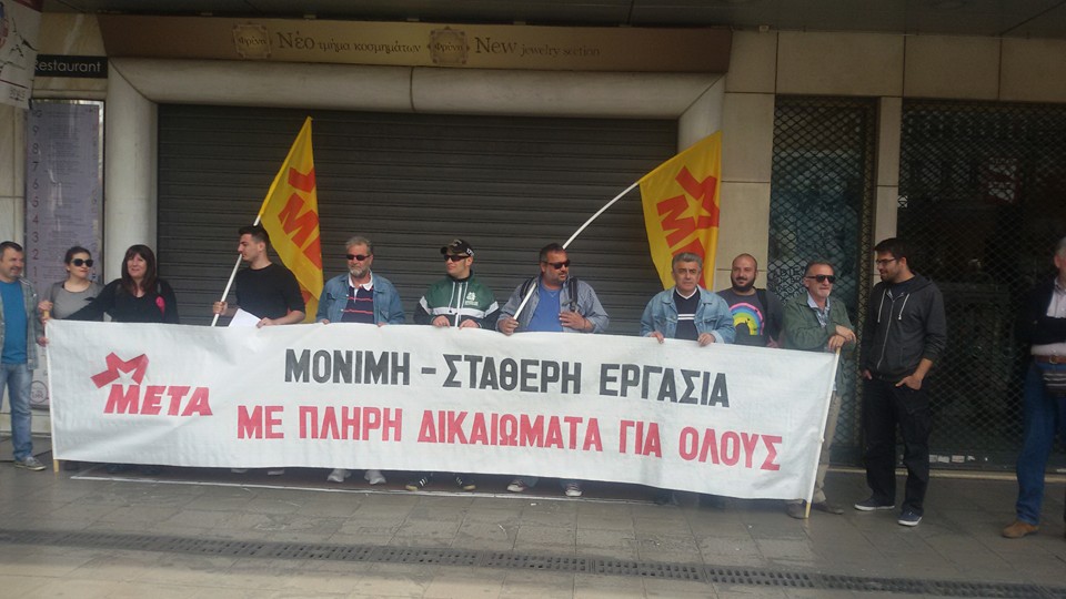 Στον αποκλεισμό του «Hondos Center» στην Ομόνοια προχώρησε το ΜΕΤΑ το πρωί της Κυριακής 8 Μάη, ημέρα κατά την οποία λειτουργούν τα εμπορικά καταστήματα, στο πλαίσιο των κινητοποιήσεων των εργαζομένων σε δημόσιο και ιδιωτικό τομέα κατά του νέου απασφαλιστικού – φοροληστρικού νομοσχεδίου, της κυριακάτικης λειτουργίας των καταστημάτων αλλά και στο πλαίσιο των εκδηλώσεων για την Εργατική Πρωτομαγιά 2016.