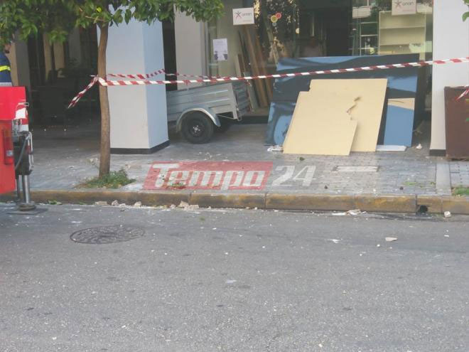Τμήματα από την πρόσοψη μπαλκονιού 4ου ορόφου πολυκατοικίας επί της οδού Αγίου Ανδρέου στην Πάτρα αποκολλήθηκαν και κατέληξαν στο πεζοδρόμιο.