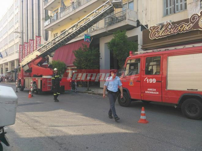 Το περιστατικό σημειώθηκε λίγο μετά τις 10.30 το πρωί της Πέμπτης. Επί τόπου έσπευσε γερανοφόρο όχημα της Πυροσβεστικής, προκειμένου να απομακρύνει από το μπαλκόνι σοβάδες που έστεκαν απειλητικά πάνω από τα κεφάλια περαστικών, ενώ η κυκλοφορία επί της Αγίου Ανδρέου διεκόπη προσωρινά.