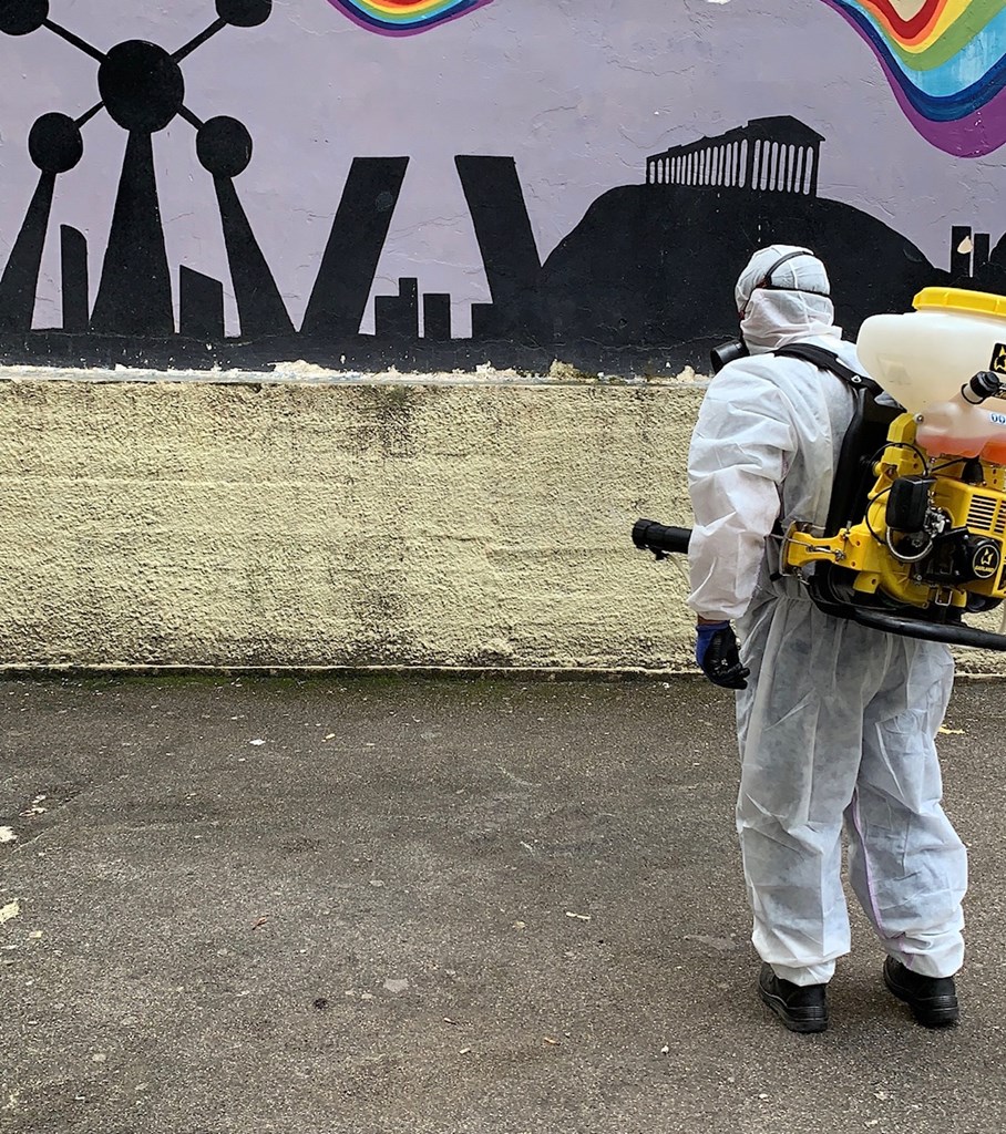 Ήδη τις προηγούμενες ημέρες ολοκληρώθηκαν πλήρεις και σχολαστικές απολυμάνσεις σε 45 κτηριακά συγκροτήματα και από σήμερα συνεχίζονται και στα υπόλοιπα από τις υπηρεσίες του Δήμου Αθηναίων τηρώντας όλους τους κανόνες ασφάλειας και υγιεινής του Εθνικού Οργανισμού Δημόσιας Υγείας.