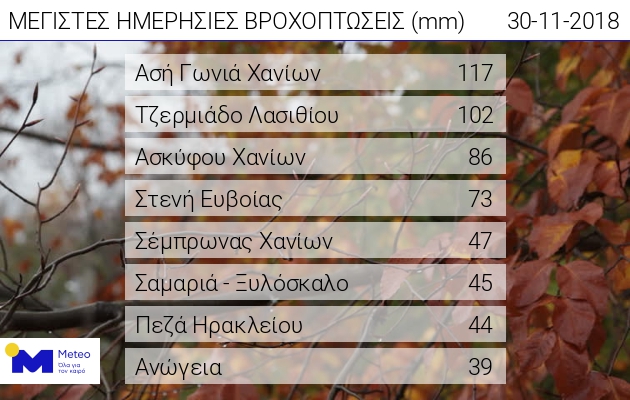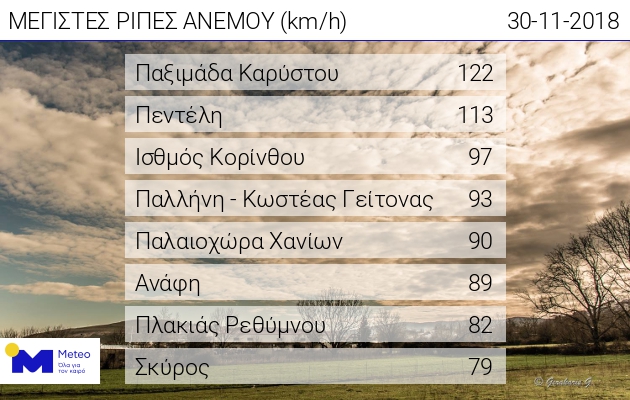 Στους πίνακες που ακολουθούν μπορείτε να δείτε τα μεγαλύτερα ύψη βροχής αλλά και τις ισχυρότερες ριπές ανέμου που κατέγραψαν οι σταθμοί του Εθνικού Αστεροσκοπείου Αθηνών, έως το μεσημέρι της Παρασκευής.