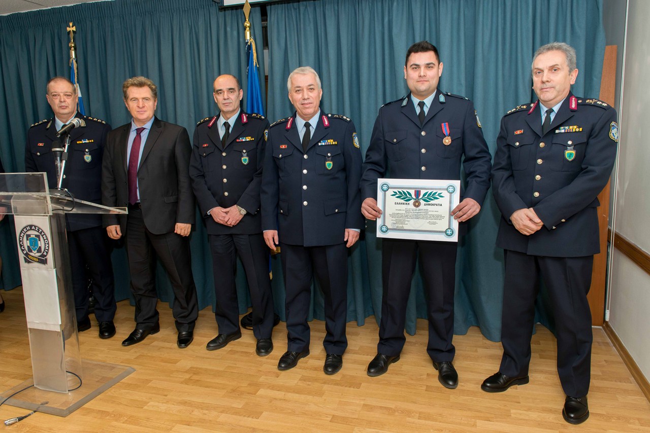 Σε ειδική τελετή που πραγματοποιήθηκε σήμερα (9-3-2017) το πρωί, στο Αστυνομικό Μέγαρο Αττικής, απονεμήθηκε Αστυνομικό Μετάλλιο, μετ’ αντίστοιχου διπλώματος, «Αστυνομικός Σταυρός», στον Αστυφύλακα Τερζάκη Βασίλειο, για εξαίρετη δραστηριότητα την οποία επέδειξε κατά τη διάρκεια των καθηκόντων του, εκθέτοντας αποδεδειγμένα τη ζωή του σε κίνδυνο.