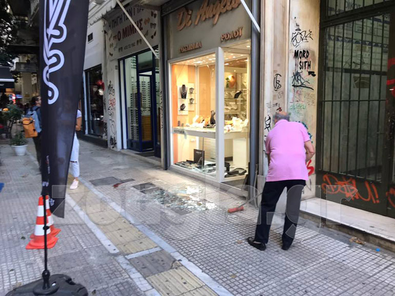 Σύμφωνα με πληροφορίες, ένας τοξικομανής μπήκε με μαχαίρι στο κατάστημα αλλά βγαίνοντας έπεσε πάνω στη βιτρίνα και τραυματίστηκε. Αφοπλίστηκε από την αστυνομία, συνελήφθη και μεταφέρθηκε στο νοσοκομείο. Δεν υπάρχουν πληροφορίες για την κατάσταση της υγείας του.
